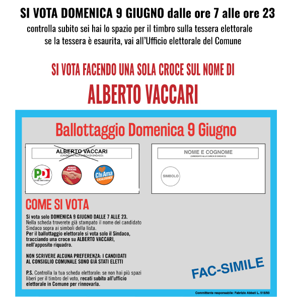 CASALGRANDE: Domenica 9 Giugno dalle 7 alle 23 si vota per il ballottaggio