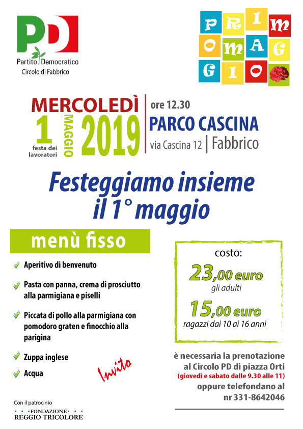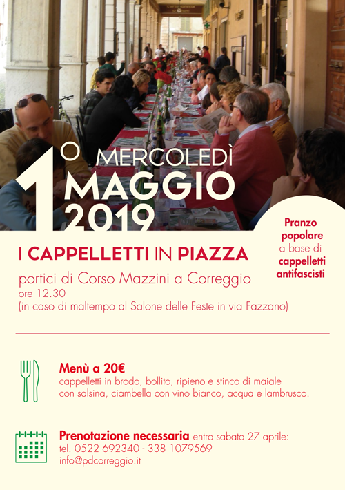 Primo maggio: a Correggio cappelletti in piazza - a Fabbrico pranzo al Parco Cascina