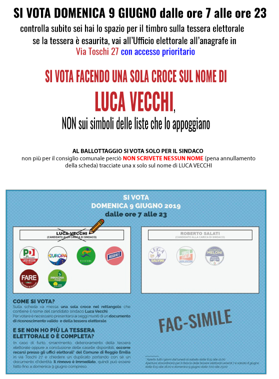 REGGIO EMILIA: Domenica 9 giugno dalle 7 alle 23 si vota per il Ballottaggio