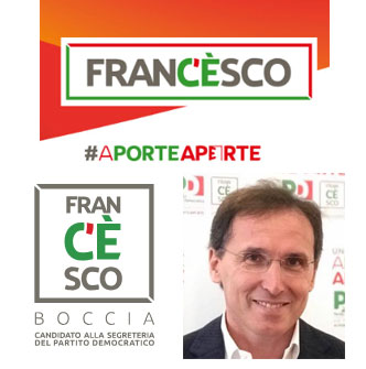 FRANCESCO BOCCIA Costruiamo un PD #aporteaperte, in grado di ascoltare tutti e capace di dare voce a chi non ce l'ha. Un Partito che rappresenti l'anima del Paese: ceti popolari, periferie, giovani, anziani, prestatori d'opera dipendenti e autonomi. Diritti e innovazione, il nostro impegno al tempo del capitalismo globale e digitale. Un partito ecologista, del lavoro e della scuola aperta a tutti, aperta sempre. |