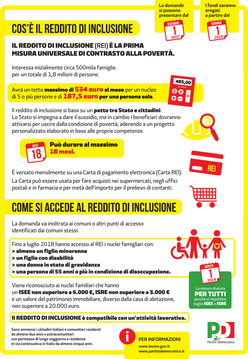 Qui [http://bit.ly/2zO99Xh] trovate i requisiti per accedere al reddito di inclusione e il modulo da compilare e consegnare presso il proprio Comune di residenza.