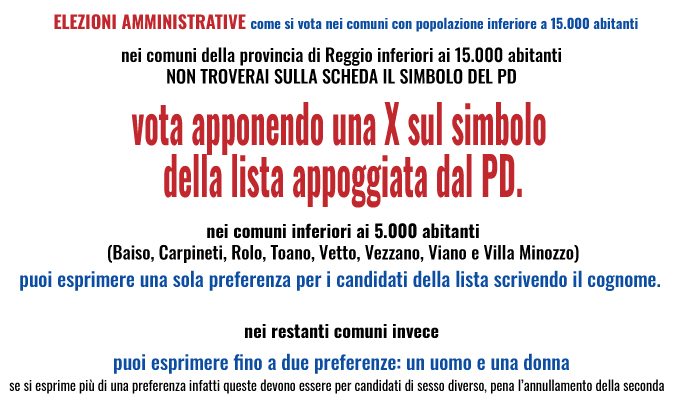 DI SEGUITO LE LISTE APPOGGIATE DAL PD NEI DIVERSI COMUNI