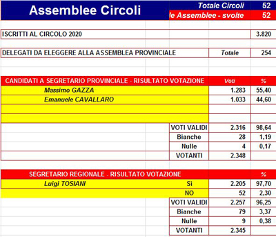 Terminati i 52 Congressi di Circolo l'Assemblea Provinciale proclama eletto a Segretario Provinciale Massimo GAZZA.